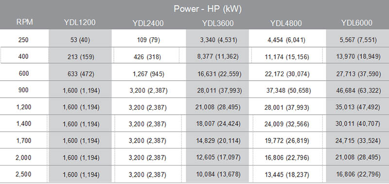 YDL型水力測功機功率曲線